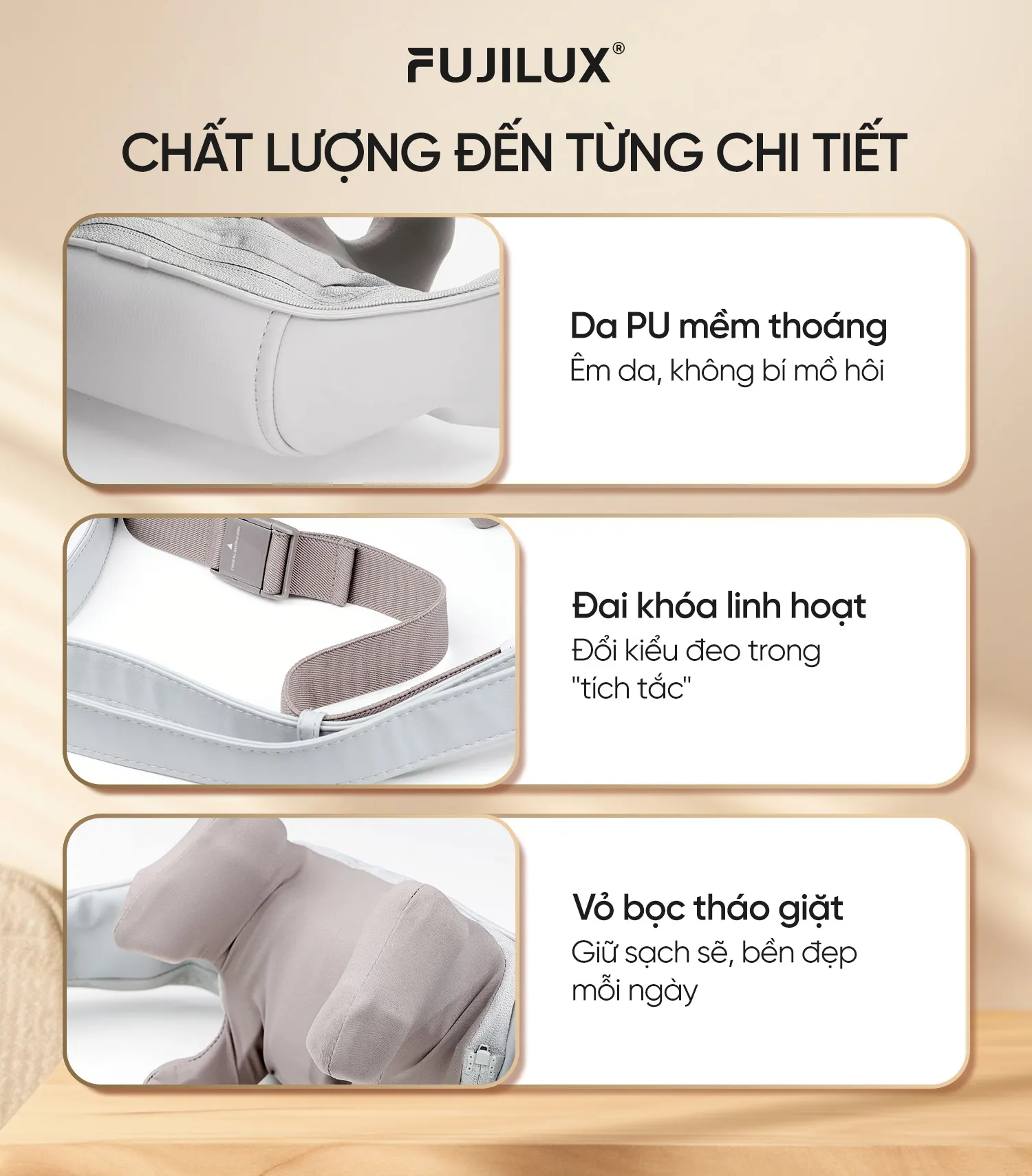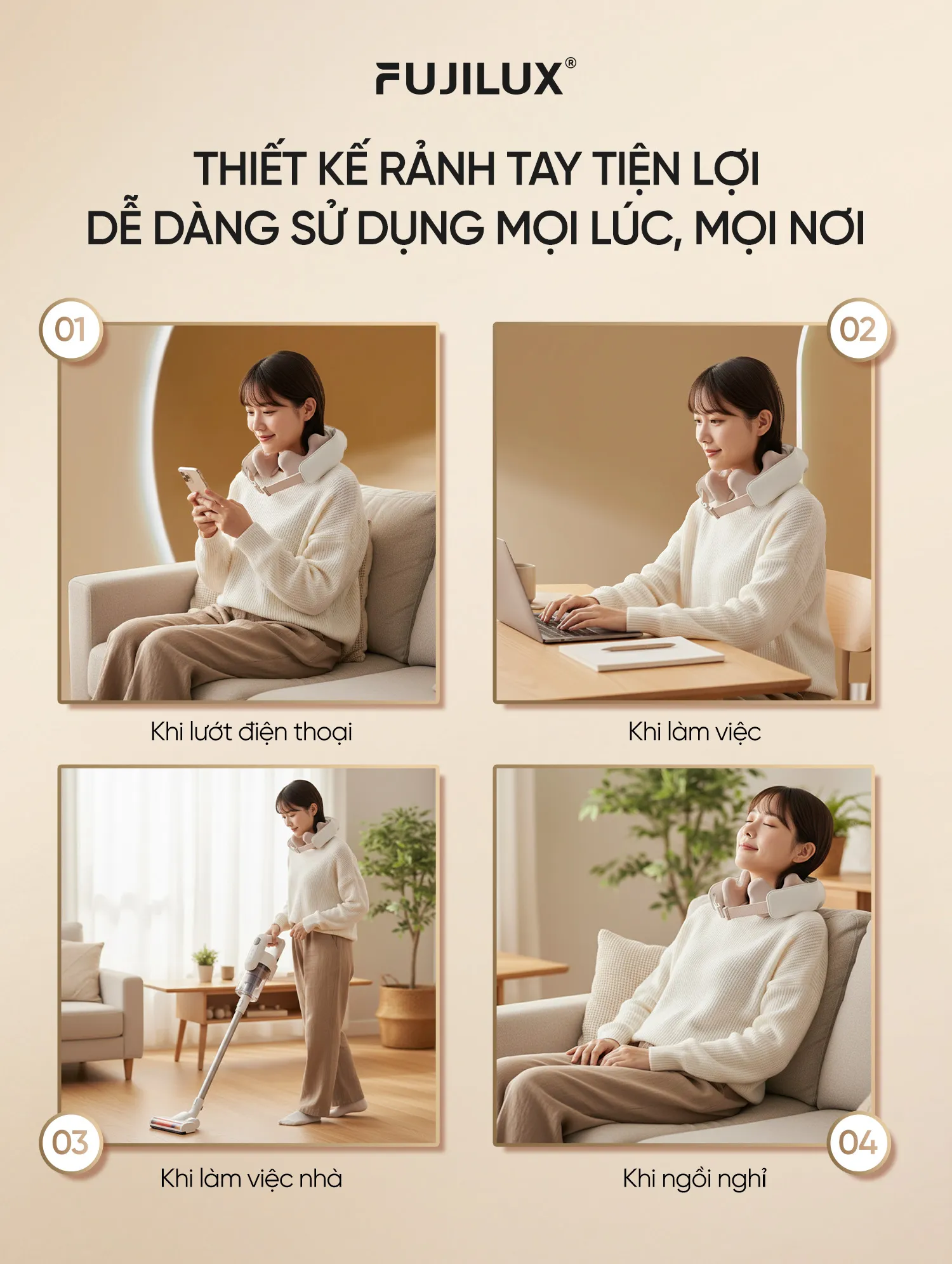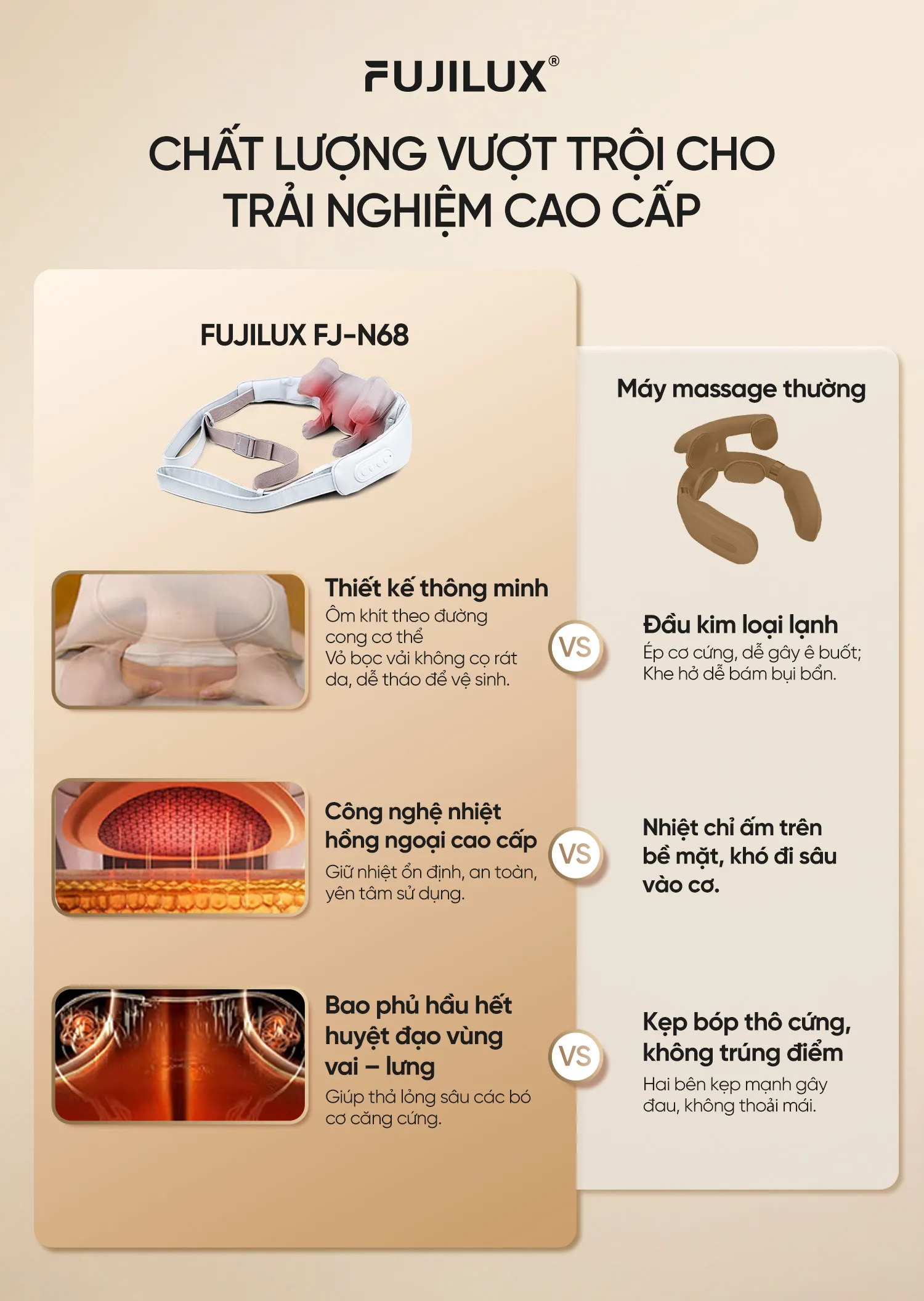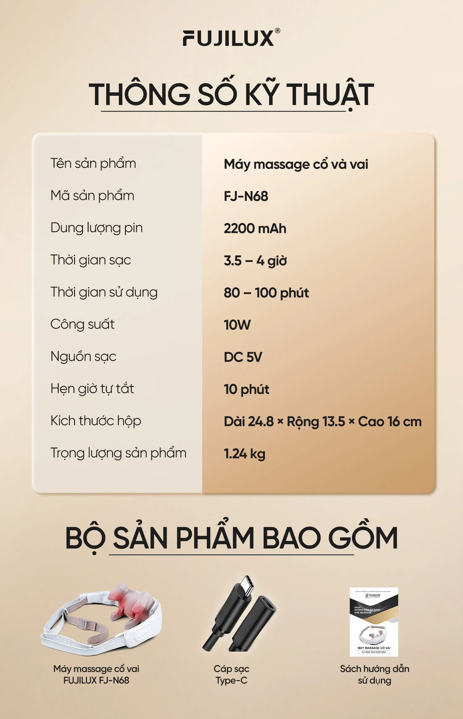 Đai Massage Cổ Vai Gáy FJ N68, với thiết kế nhỏ gọn và các chức năng massage đa dạng, chính là giải pháp lý tưởng, giúp bạn nhanh chóng giảm cảm giác đau nhức mọi lúc mọi nơi.