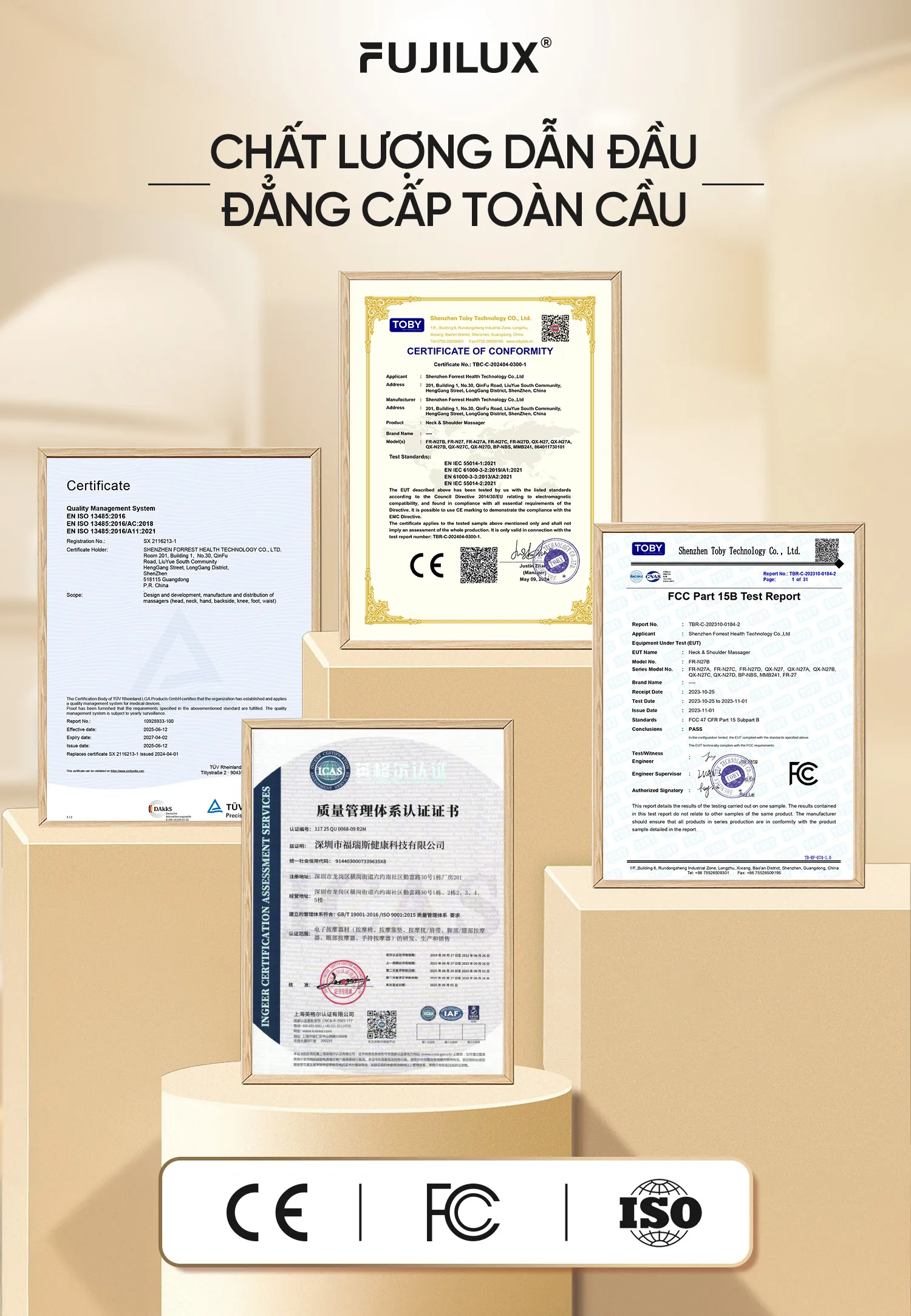 Các sản phẩm của FujiLux được sản xuất theo quy trình nghiêm ngặt, khắng định chất lượng vượt trội và an toàn với các chứng nhận CE, ROHS đảm bảo tính an toàn và hiệu quả của sản phẩm. FujiLux cam kết mang tới sản phẩm chất lượng và sự an tâm tâm tuyệt đối cho Quý khách hàng trên toàn thế giới.