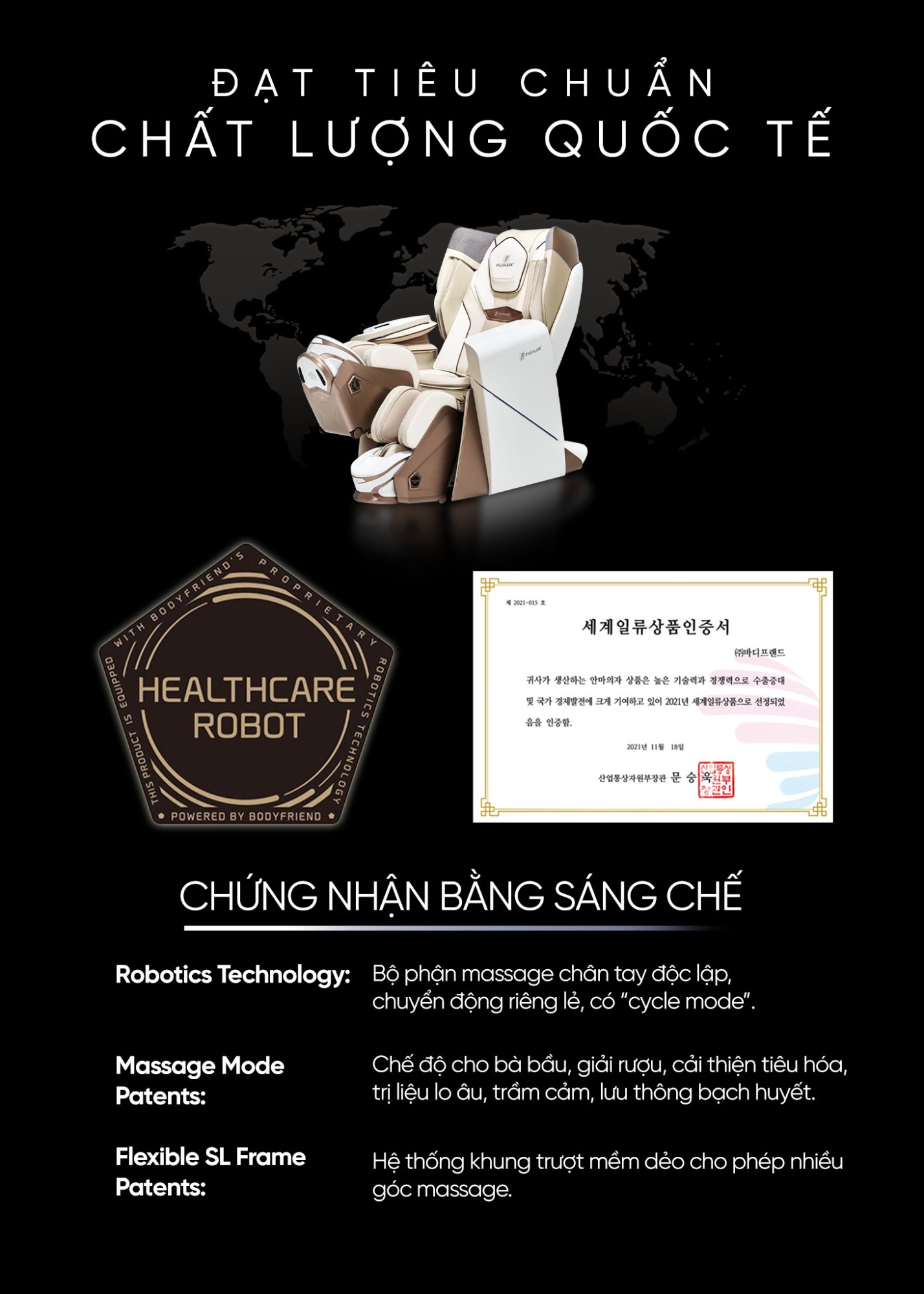 Các sản phẩm của FujiLux được sản xuất theo quy trình nghiêm ngặt, khắng định chất lượng vượt trội và an toàn với các chứng nhận CE, ROHS, cùng chứng nhận sản xuất thiết bị y tế Nhật Bản đảm bảo tính an toàn và hiệu quả của sản phẩm. FujiLux cam kết mang tới sản phẩm chất lượng và sự an tâm tâm tuyệt đối cho Quý khách hàng trên toàn thế giới.