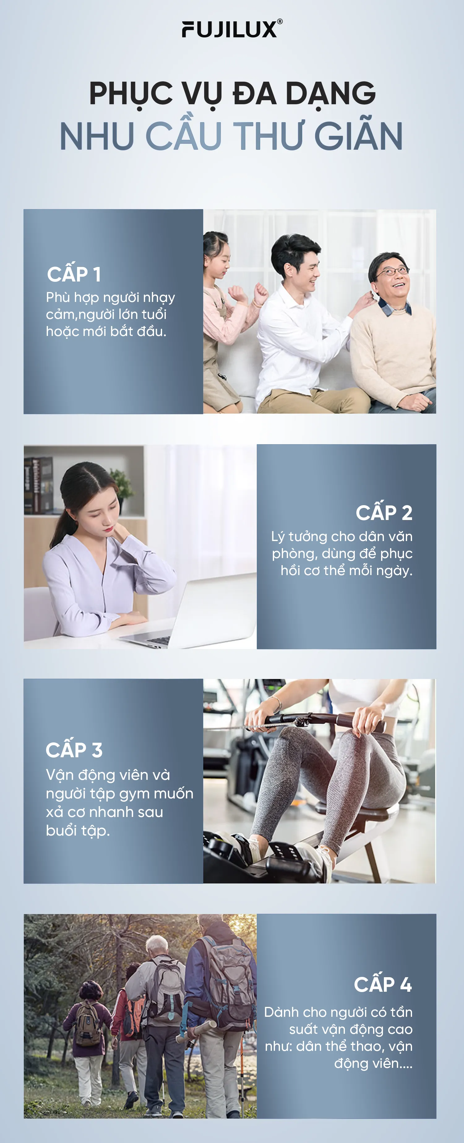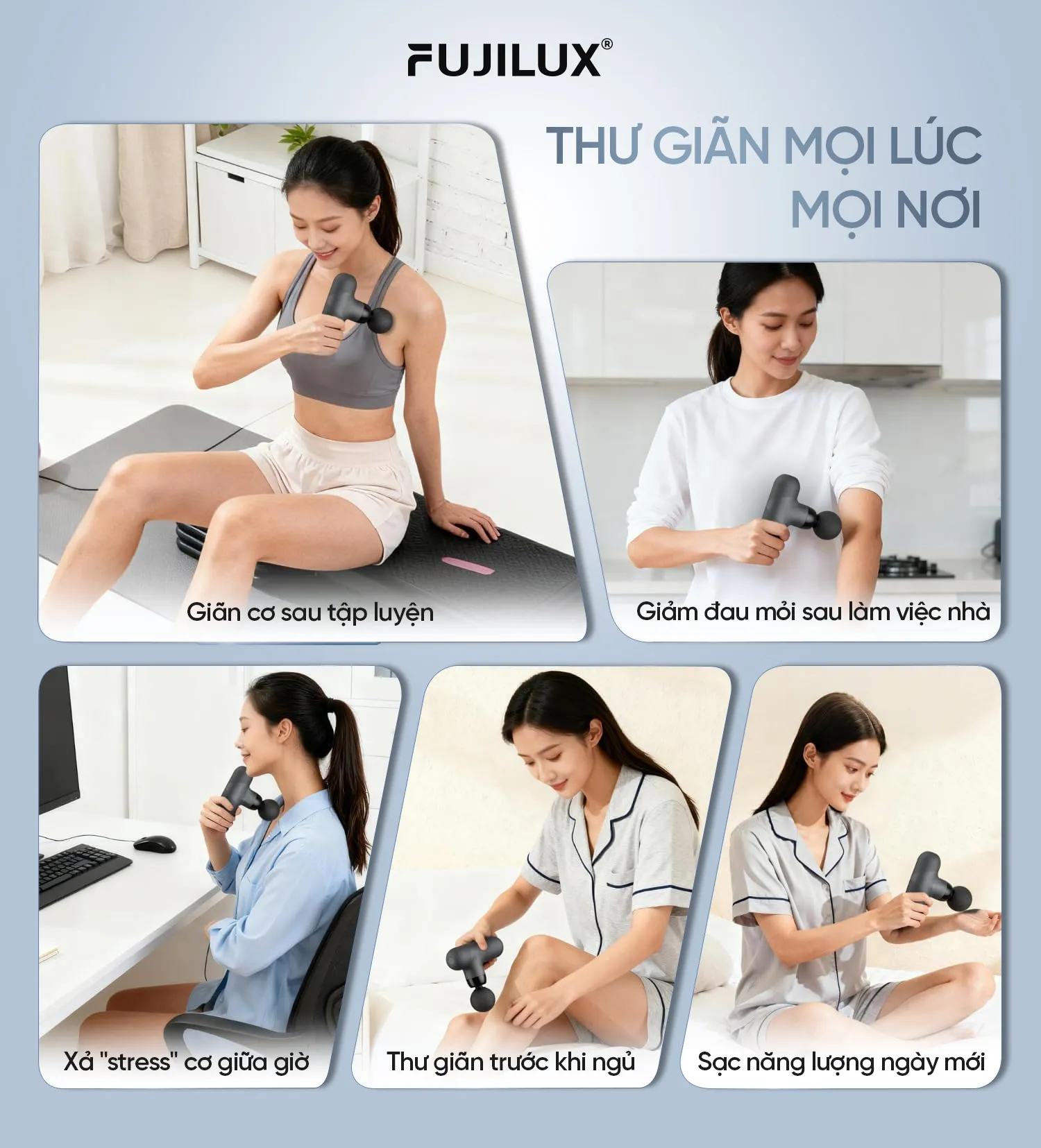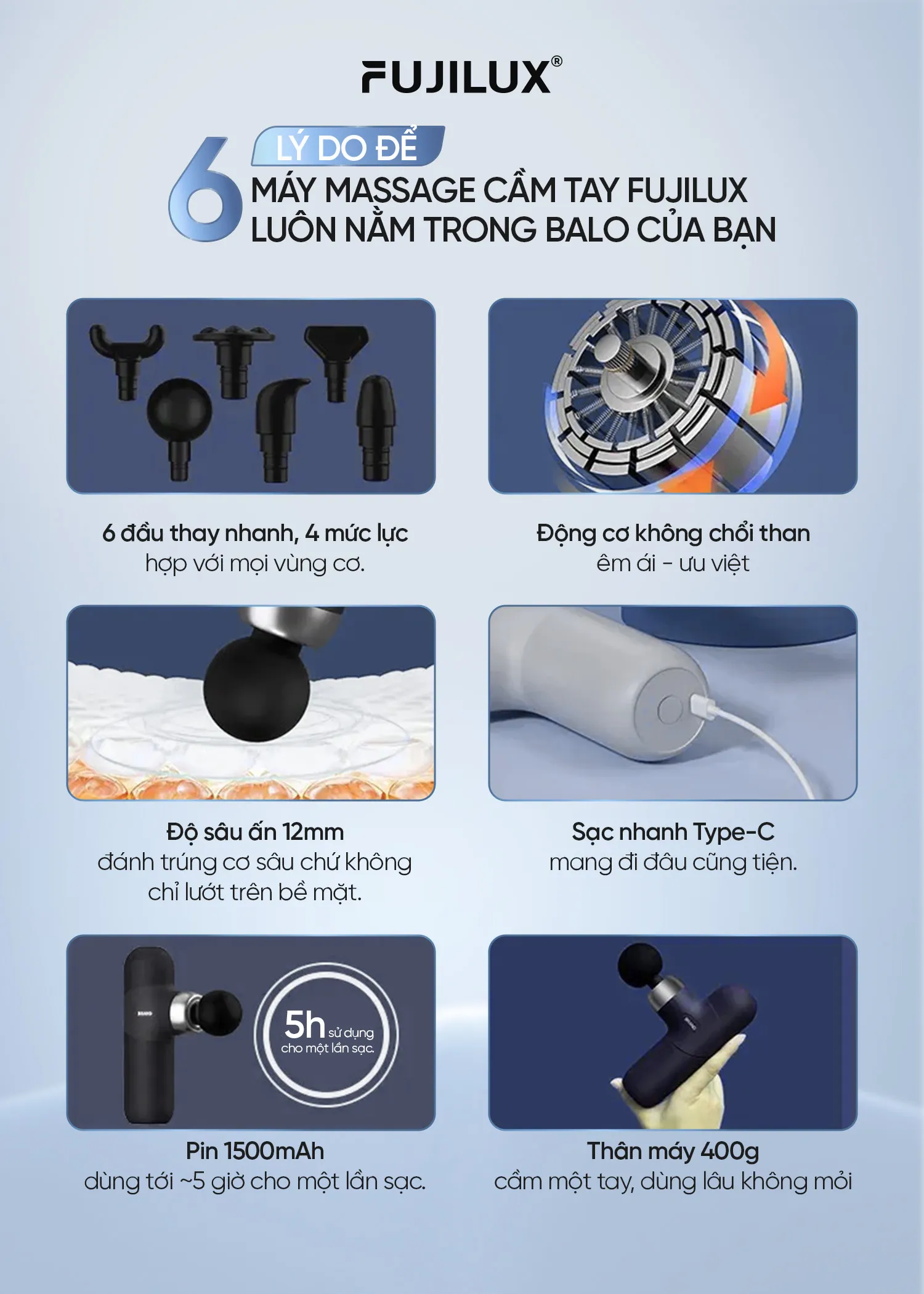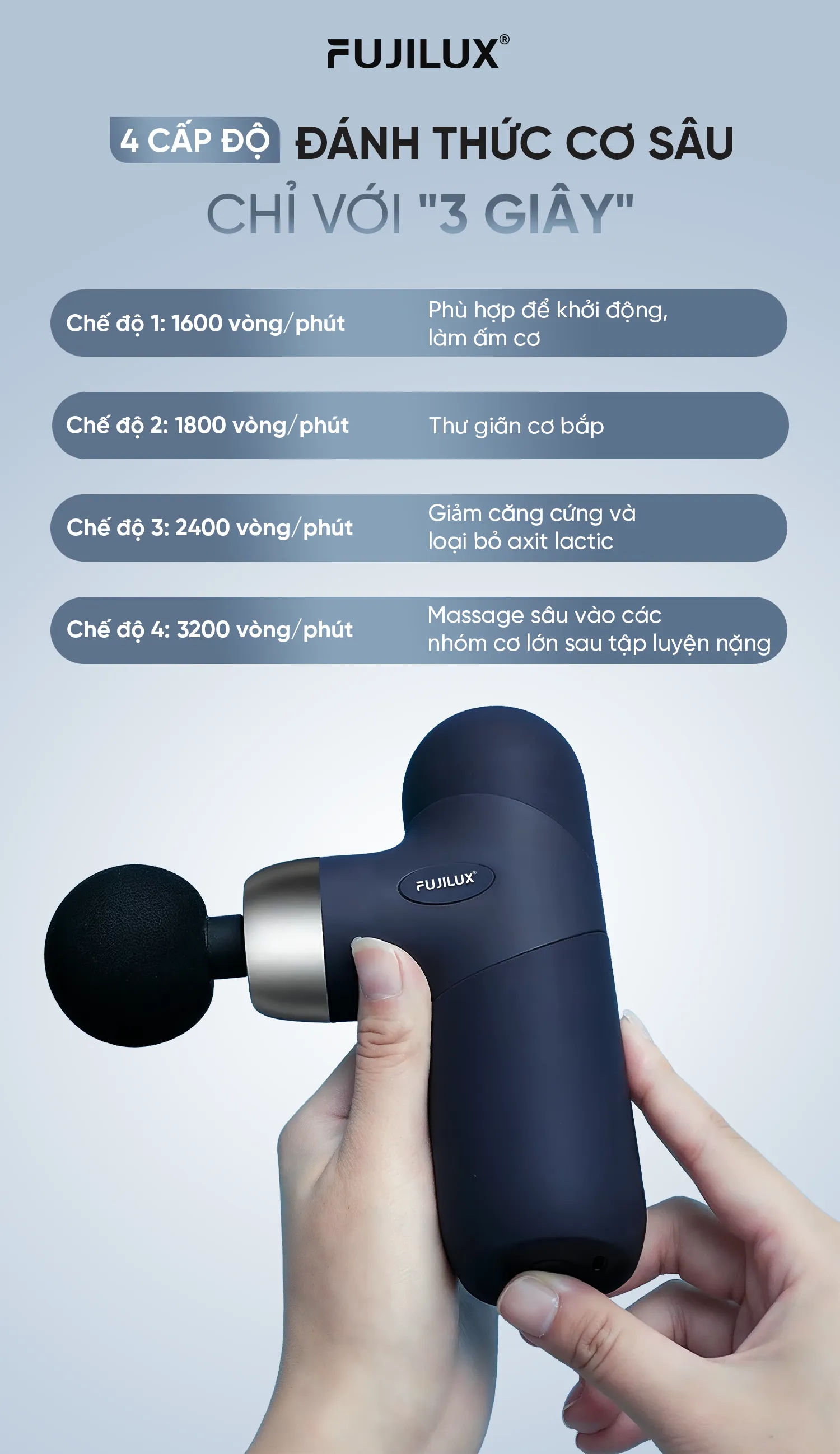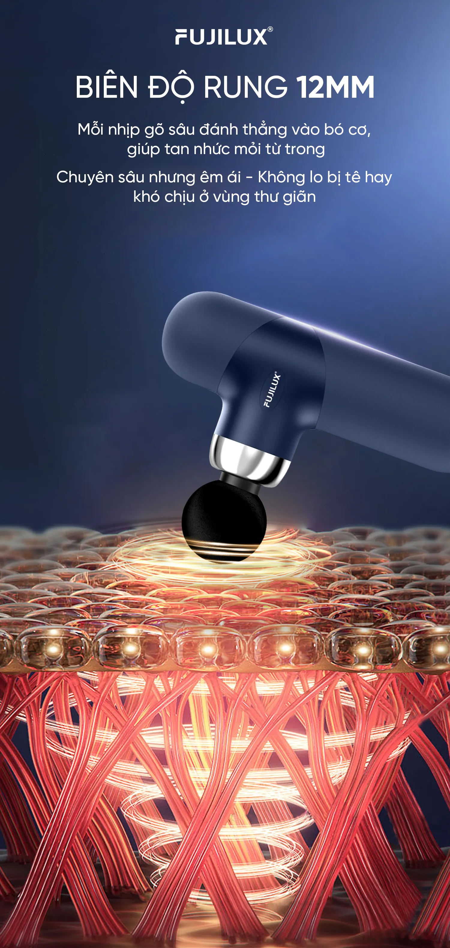 Máy massage cầm tay M02 hỗ trợ phục hồi cơ bắp, giúp giảm nhanh cảm giác mệt mỏi, hỗ trợ lưu thông máu và thư giãn cơ thể. Phù hợp cho người chơi thể thao, dân văn phòng, người lớn tuổi hoặc những người thường xuyên đau xương cơ.