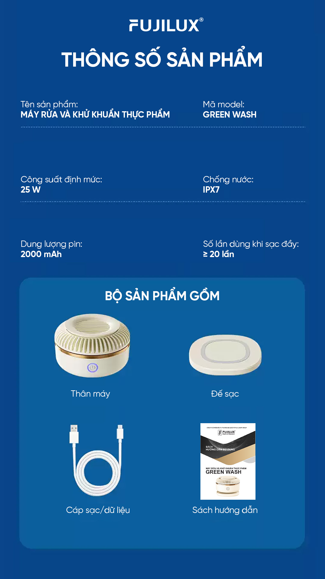 Máy rửa thực phẩm Green Wash giúp làm sạch rau củ, trái cây hỗ trợ giảm dư lượng thuốc BVTV, khử khuẩn, khử mùi, an toàn cho cả gia đình.